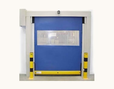 The range of high-speed rapid roll-up doors is designed for safe, fast, efficient, and straightforward operation in any busy internal doorways. The door curtain rolls up at high speed on a shaft, which is directly connected to high-performance drives.